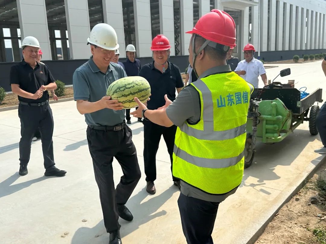 商志新同志強調,黨建不是喊口號,要深度融入生產運營各環(huán)節(jié)。在高新區(qū)食品產業(yè)園施工現(xiàn)場,他為一線員工送上西瓜、涼茶,以及裝有藿香正氣水、風油精等物品的“清涼禮包”,詳細詢問員工的作息安排和防暑措施落實情況,并叮囑大家高溫天作業(yè),一定要做好防暑安全工作!工人師傅擦汗笑著回應:“謝謝領導關心,有您這句話,俺們干活更有勁了!”